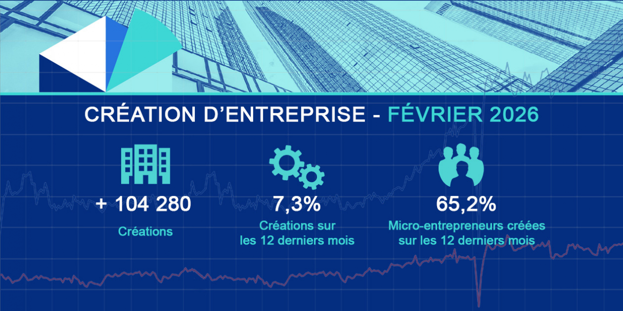 En février 2026, la création d’entreprises gagne légèrement en intensité, avec 104 280 nouvelles entités créées, soit une hausse de 0,6 % après la stabilisation observée en janvier. Le mouvement reste mesuré, porté par le regain des micro-entrepreneurs et le retour à la hausse des entreprises individuelles classiques, tandis que les sociétés marquent un léger repli.